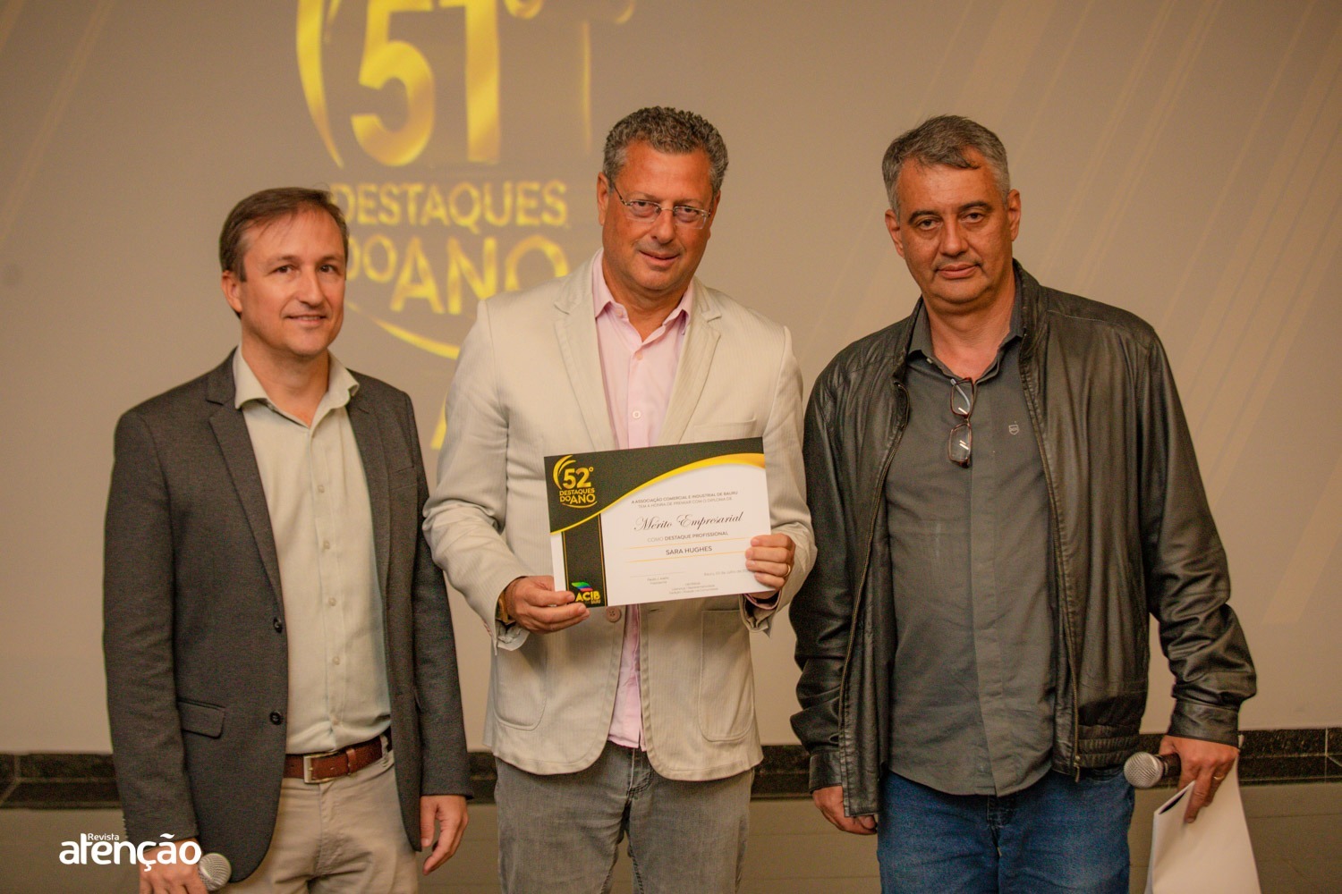 Nesta quarta-feira (3), ocorreu o lançamento oficial do 52.º Prêmio Destaques do Ano, organizado pela Associação Comercial e Industrial de Bauru (ACIB). Presentes estavam a diretoria da associação, convidados e homenageados. Os premiados são: Óticas Diniz (Destaque Comércio), Programa Cidade 360º (Destaque Revelação), Sara Hughes da FourC (Destaque Profissional), Gente Mais Consultoria e Treinamento (Destaque Serviços), e o empresário Massaad Kalim Massaad (Destaque Personalidade). A cerimônia de entrega será no dia 31 de agosto no Sagae Eventos, em Bauru.