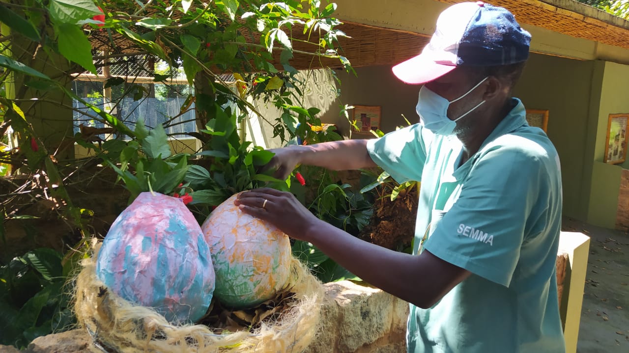 Ovos de galinha coloridos com corantes naturais para os suricatos e mangustos