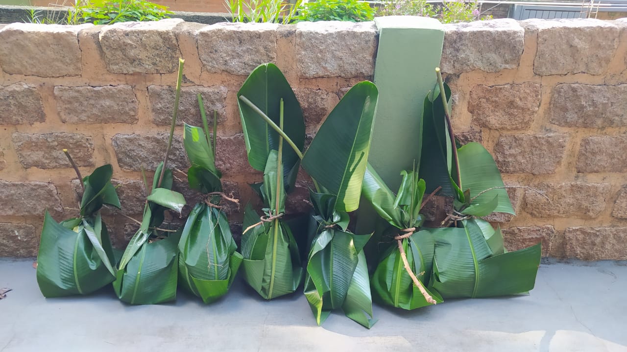 Folhas de hibisco embrulhadas no ovo de papel para os cangurus e veados