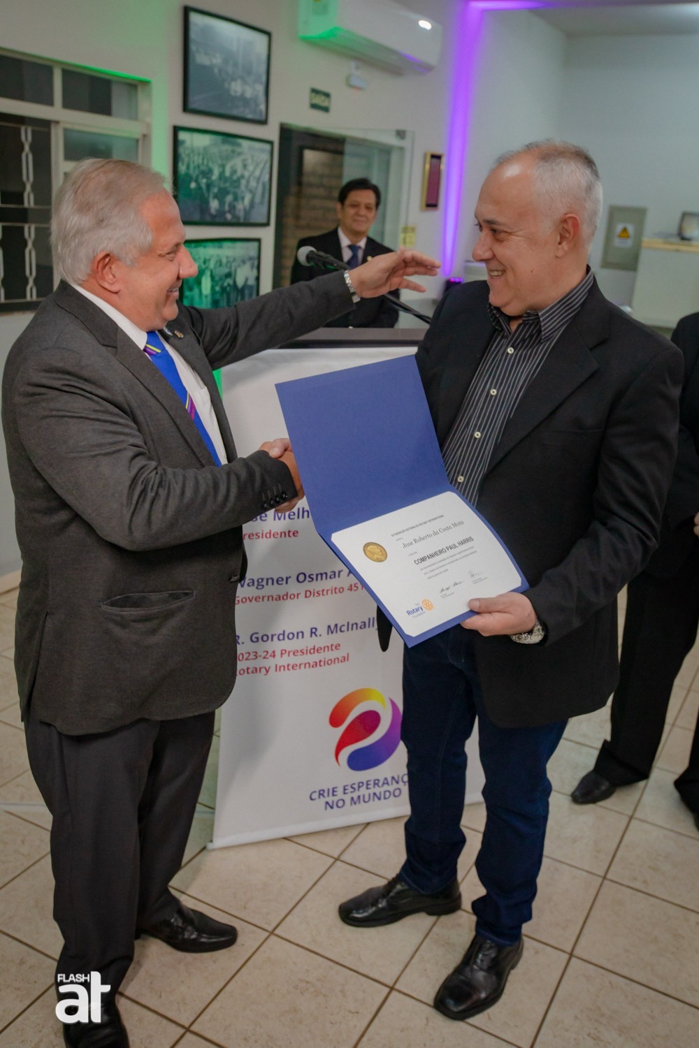 Nesta segunda-feira (1), aconteceu a Cerimônia de Transmissão e Posse do Rotary Club de Bauru para o ano rotário de 2024/2025. Durante o evento, o presidente cessante José Melhem passou o cargo para o presidente entrante Rafael Bien Henrique.