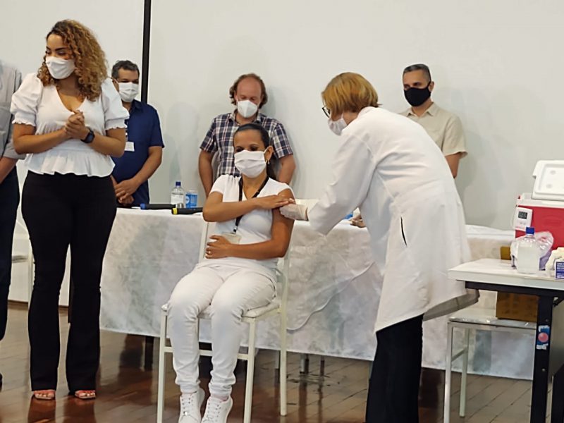Depois foi vacinada Natalina Puliesi, 43 anos, enfermeira-chefe da Unidade Básica de Saúde (UBS) Vila Falcão, que é unidade de referência para Covid.
