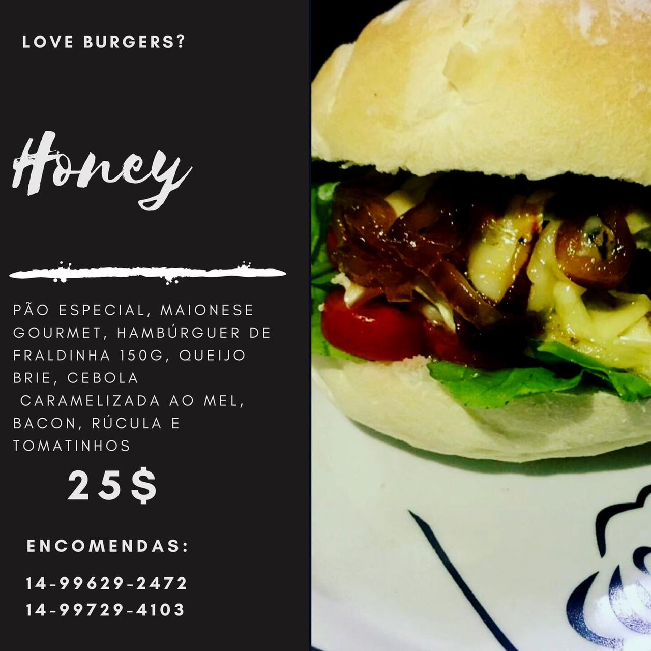 Lanches com ingredientes exclusivos (anéis de cebola, mel, gorgonzola, guaca, pimenta, chutney, goibada, entre outros)