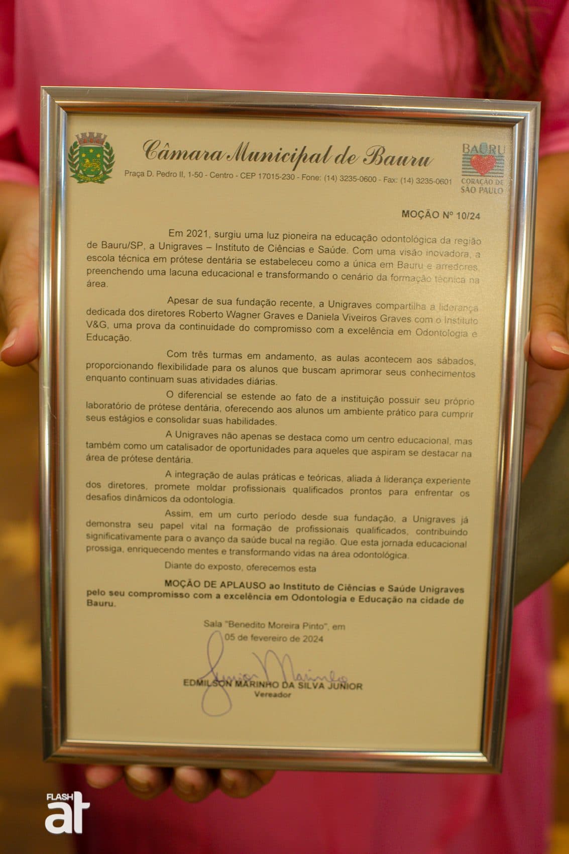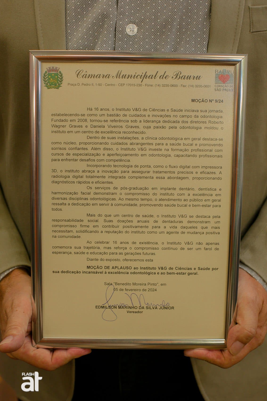 🎉 Na tarde desta quinta-feira (11), o Instituto V&G / Unigraves foi homenageado com uma Moção de Aplauso na Câmara Municipal de Bauru!
