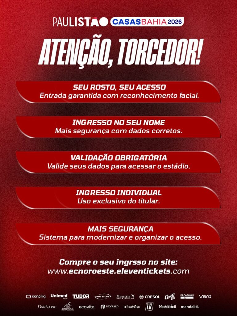 Excepcionalmente para este primeiro jogo entre Noroeste x Red Bull Bragantino, caso haja qualquer instabilidade ou dificuldade no reconhecimento facial, o acesso ao estádio poderá ser liberado via QR Code, gerado pelo próprio sistema, garantindo a entrada do torcedor.