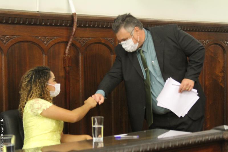 A prefeita agradeceu a Deus e a suas família e equipe; e disse que sabe que não conseguirá, sozinha, superar os desafios da cidade, destacando que os vereadores são parte do processo de mudança que a sociedade espera.