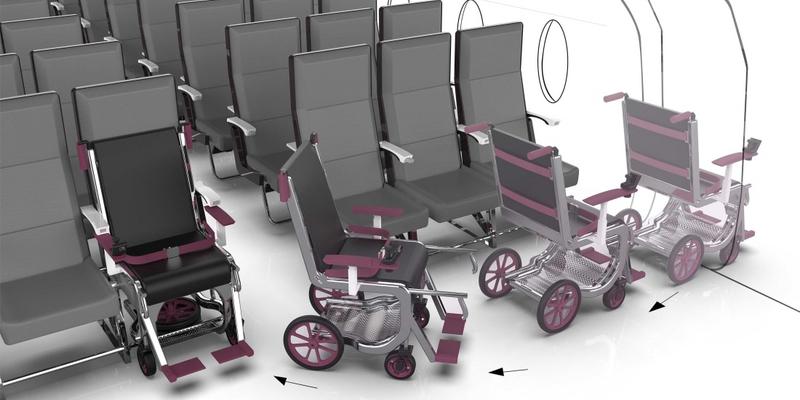 Outro destaque da categoria foi o assento ROW1, da Ciara Crawford, que permite que uma cadeira de rodas seja encaixada perfeitamente na fileira, promovendo uma experiência de voo acessível.