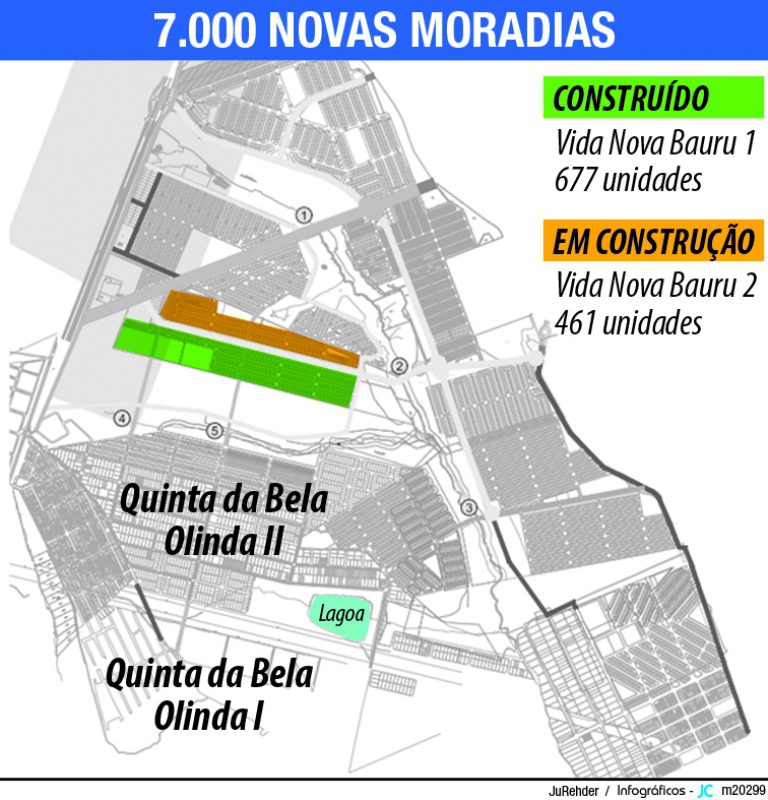 A Quinta da Bela Olinda, somando os demais bairros anexos da região “Nordeste” de Bauru, como o Jardim Ivone e Distrito 4, receberão nos próximos anos um aumento superior a 20 mil moradores. E a infraestrutura está programada, afirma a prefeitura. Trata-se de uma ampliação significativa exercida pela Secretaria Municipal de Planejamento (Seplan), na gestão Clodoaldo Gazzetta (PSDB), que encerra mandato em 31 de dezembro definindo 10 empreendimentos com quase 7 mil novas moradias populares. A maioria de construtoras privadas cujas contrapartidas financeiras ao Município vão revitalizar áreas públicas, duplicar ruas, construir calçadas e transformar lagoa em um parque municipal.