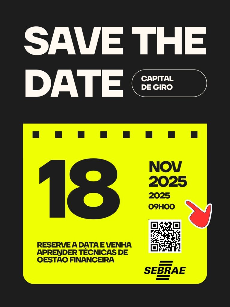Com a proximidade das datas mais movimentadas do comércio, o Sebrae-SP promove a oficina gratuita “Faça a Gestão do Capital de Giro”, voltada para MEIs, micro e pequenas empresas que desejam organizar as finanças, garantir fôlego para as operações de fim de ano, como a Black Friday e o Natal, e entender como buscar crédito de forma consciente e estratégica junto aos bancos. A ação tem data marcada para o dia 18 de novembro, às 9h, no Escritório Regional do Sebrae-SP em Bauru na Avenida Duque de Caxias, 16-82, Vila Cardia. As vagas são limitadas e o formulário de inscrição está disponível no link.